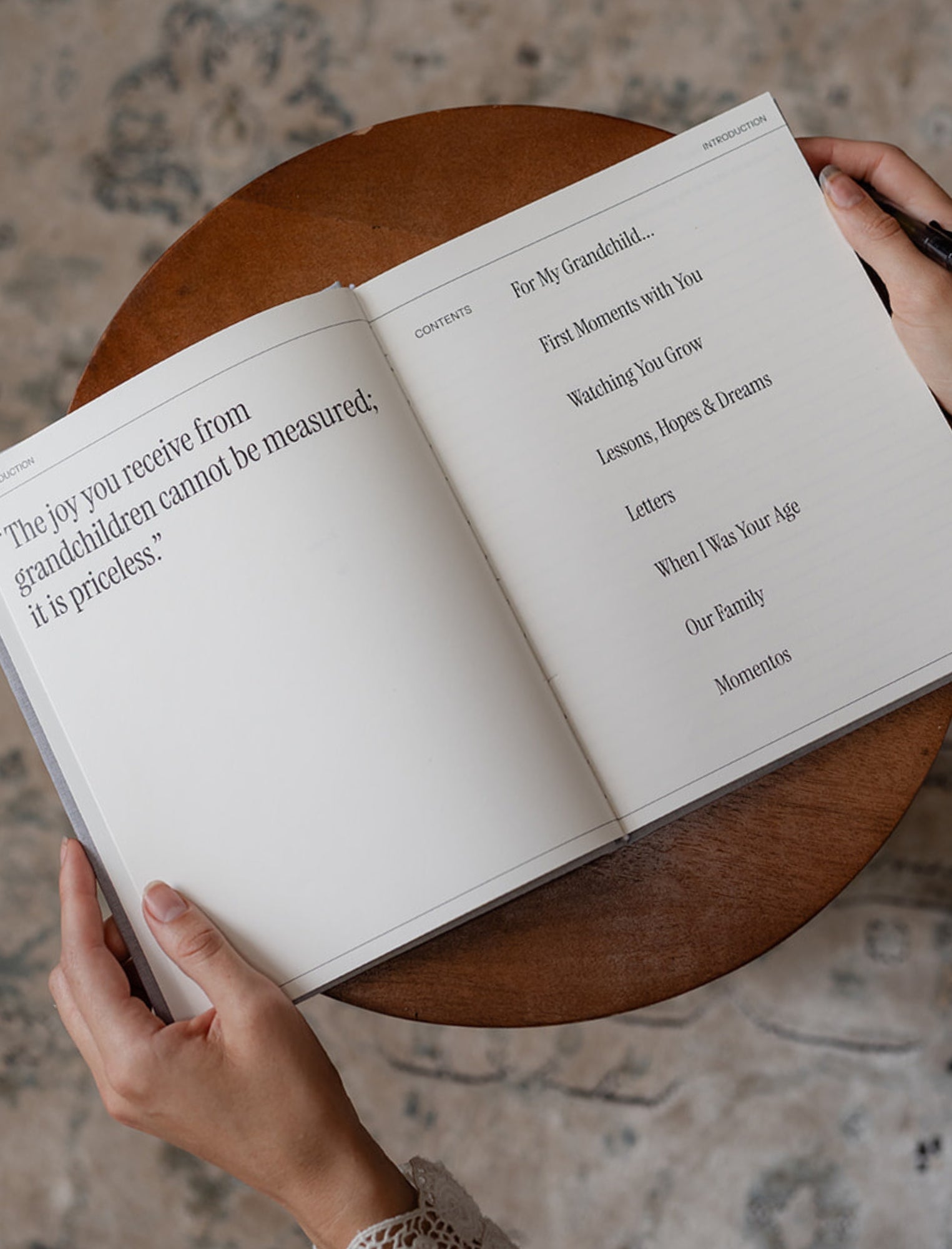 Whether given as a heartfelt gift or filled in quietly over time, For My Grandchild is a beautiful way to leave your words woven into the story of your family.