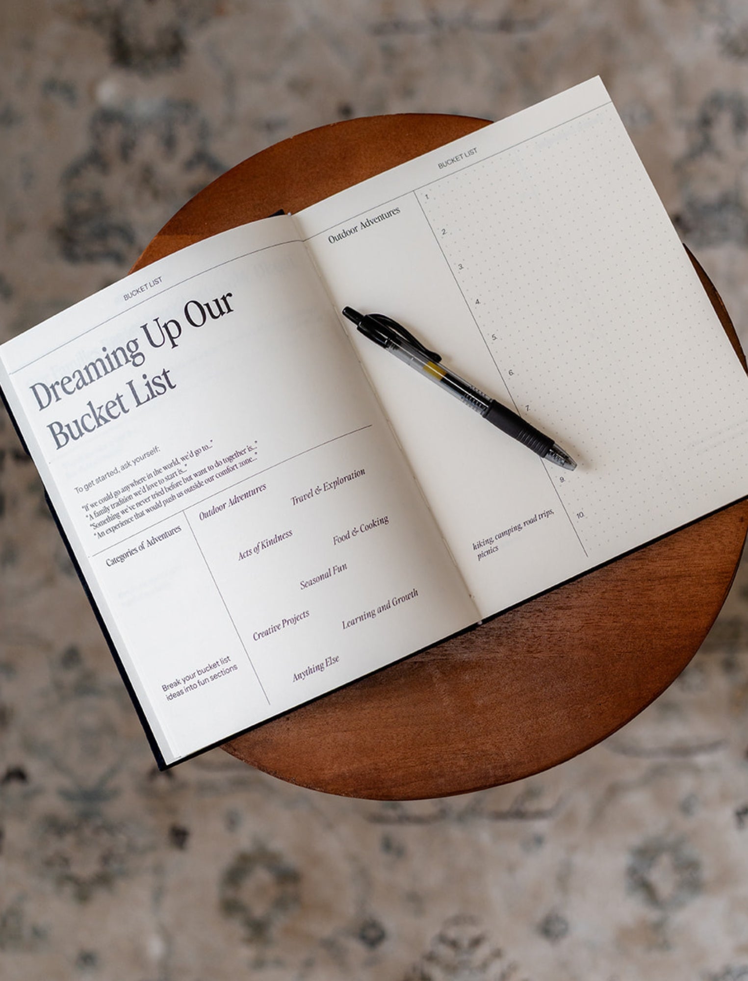From simple joys like backyard picnics to exciting trips and once in a lifetime adventures, The Family Bucket List Journal becomes a keepsake full of stories and memories that can be looked back on for years to come.
